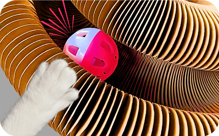 Incluye todo lo necesario. El Kitty Kurlz y bolas de seguimiento de alta calidad y tamaño perfecto que nunca se caen y le brindan a tu gato diversión sin límites.
